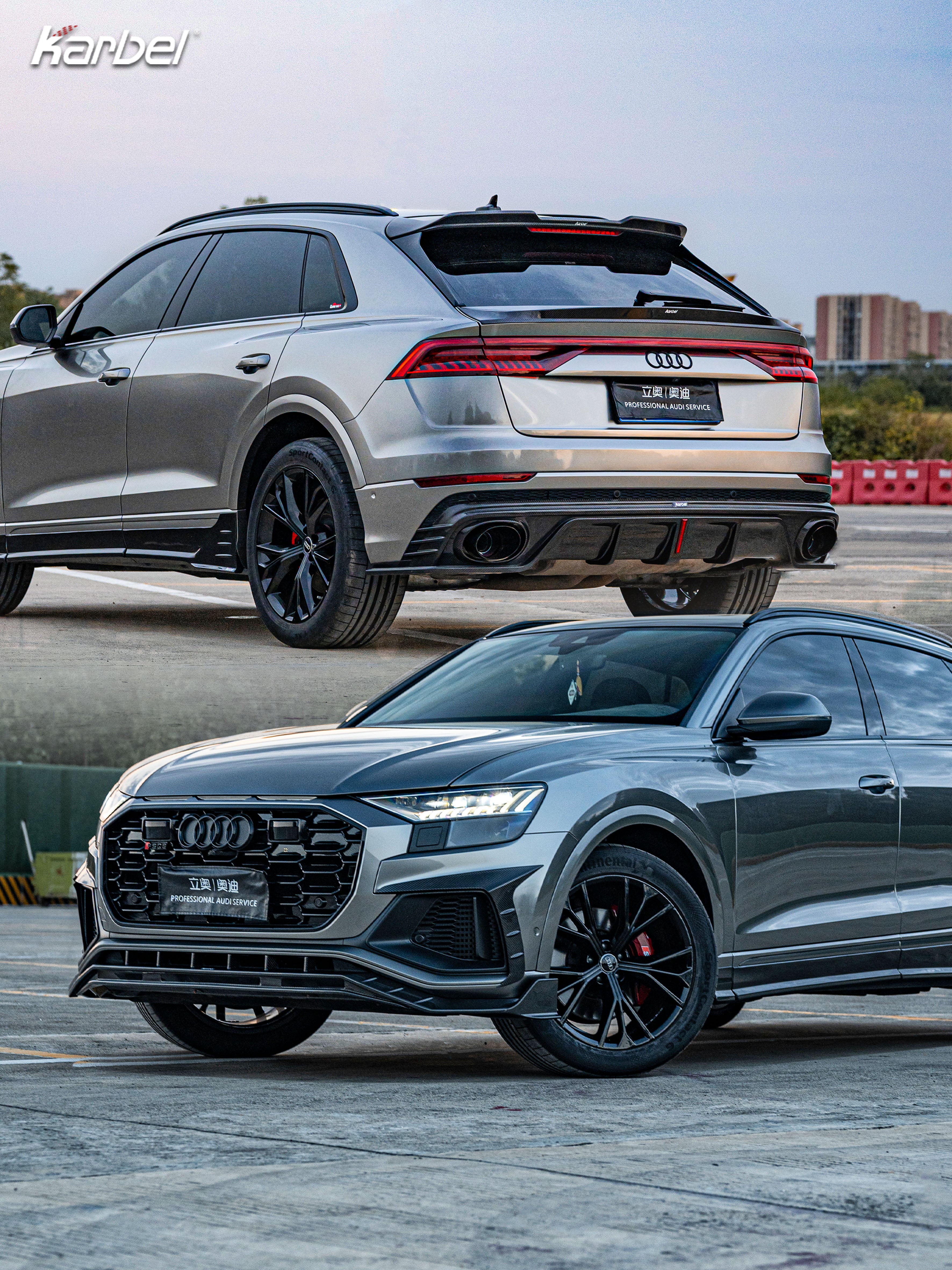 Audi Q8-SQ8 4M 2018-2024 Dry Carbon Fiber Full Bodykit , Front Lip | Upper Valance | Side Skirts | Roof Spoiler | Spoiler | Rear Diffuser