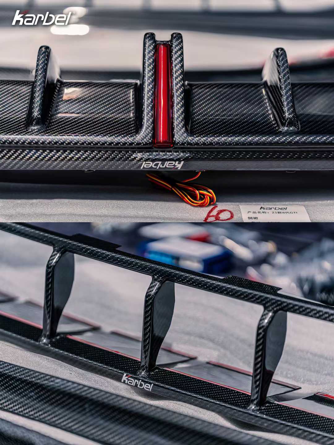 All Karbel® products are made of Dry carbon (prepreg material) that is cured in autoclave in high pressure and temperature. These material and process ensure that Karbel® products can sustain higher force and temperature than the vacuum infused carbon fiber panel. Our dry carbon products come in clear coat finish for a better presentation. From the inside of the product, you may see relatively rough surface, and that is the status before being coated.